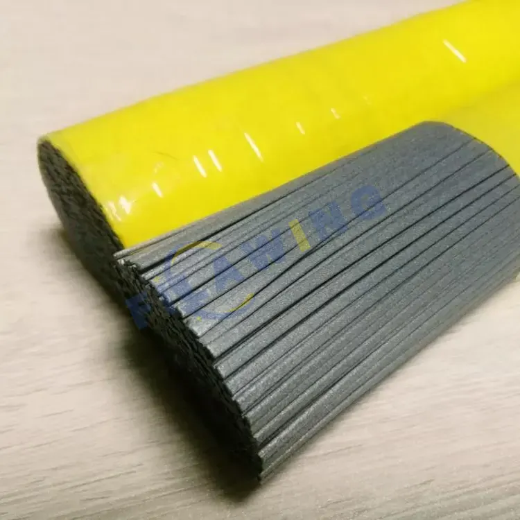 WINGS es uno de los fabricantes y proveedores profesionales de filamentos abrasivos de carburo de silicio rectangulares en China. Nuestros productos están certificados por CE y tienen existencias de fábrica, bienvenidos a nuestra venta al por mayor de filamentos abrasivos de carburo de silicio rectangulares. En comparación con los filamentos abrasivos de sección redonda, los filamentos abrasivos de carburo de silicio rectangulares tienen una vida útil más larga del cepillo, excelente rendimiento de cepillado, rigidez en condiciones húmedas, rendimiento más rápido y ofrecen una acción de desbarbado más agresiva que los cepillos de filamento redondo.